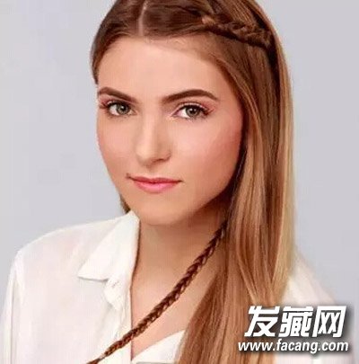 3、把所有头发都拢到一侧,然后将发辫从中间穿过。(这是很重要的一步)
