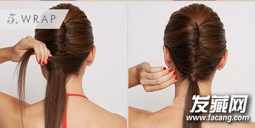 3、将剩下的头发扎成马尾辫,记得从两边选取两束缠绕在扎发处。这样一款发型就完成了。