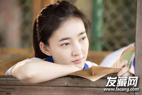 王丽坤,典型的素颜美女,扎个马尾辫露出额头,清纯气质佳。