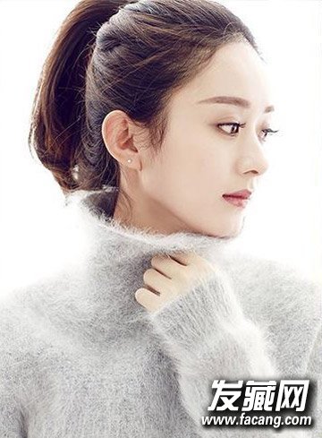 赵丽颖的侧容给人一种忧郁、安静的感觉。灰色高领毛衣搭配高马尾,隐约露出的脖颈,发丝随意的扎起,显得非常的干净,不拖沓。