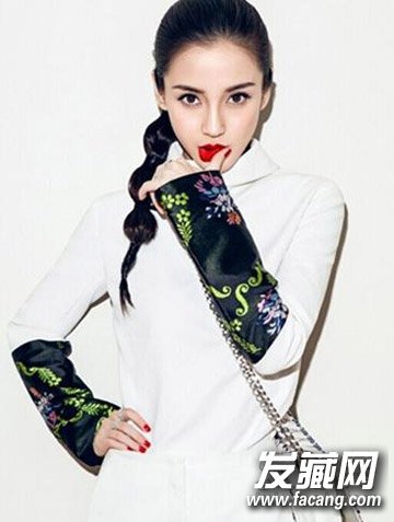 荧幕上baby的马尾辫也是蛮常见的,饱满的额头,精致五官,很适合这样的露额发型。