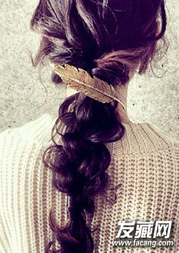 蓬松卷发可以绑成麻花辫,适当的将头发拉松营造随意的感觉。
