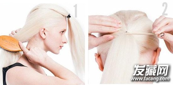 Step1:将头顶中间的发束分出来,分到后脑勺位置,取出的发束待用,将剩下的头发整理梳顺。