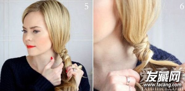7、与马尾处理方式不同,将背后的三股辫拉松一些会更美观。