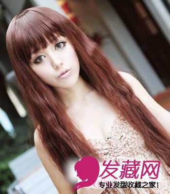 细碎刘海+麦穗烫 此款发型尽显浪漫唯美的公主气息,就像芭比娃娃一样卡哇伊,让人怦然心动。好看的麦穗烫长发,搭配细碎的刘海,把脸型衬托得更加精致,淡淡的酒红色发色,尽显甜美时尚。