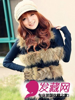 强烈的韩式风范儿的长卷发造型有没有瞬间笼络了你的心灵呢?空气感十足的大卷随意的搭落在层次感强烈的皮草外套上,看上去非常的时尚又奢华!绚丽的染发颜色与皮草的颜色呈现出了今年流行的撞色流行风采,搭配一顶温暖的帽子,为寒冷的冬季增加多了一分暖意!