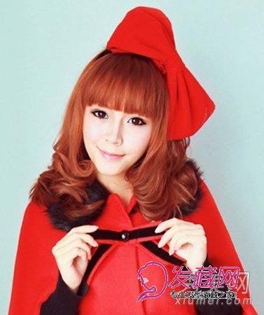 喜逢年末,棕红色卷发,齐刘海、大蝴蝶结,青春阳光的可爱女生假发。