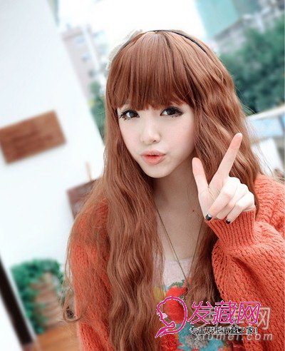 甜美的齐刘海玉米烫,棕红色的发色时尚流行,青春活泼,适合年轻的女孩们!