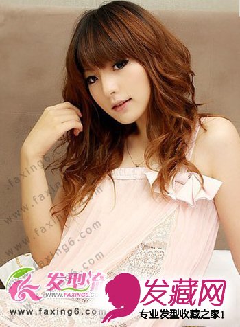 浪漫时尚的烫发发型给人以浪漫性感的感觉,将长长的卷发侧放置肩的一侧,极具风情万种,十分的迷人,齐刘海的发型设计,将美眉的眼睛衬托的更大,优雅无比。