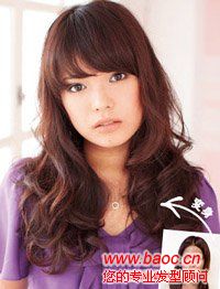 这款长发烫发发型适合脸型椭圆脸、倒三角脸,适合发质:适中、偏软,发量适中的女生。齐刘海与大波浪是永远不退出潮流的组合,也是最保险的瘦脸发型哦,头顶至波浪的发线尽量延长,用手随意抓两下再出门,让你每走一步都摇拽生姿,完美气质立即就散发出来喽。