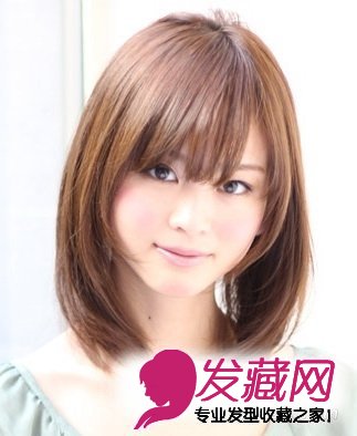 齐肩头发自然披肩,半括弧形状的卷曲帮助打造瓜子脸,流露出恬静的气质。摩卡棕色的发色,增添了时尚气息。