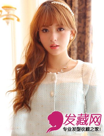 卷发发型图片采用薄薄的刘海,遮住了胖胖的圆脸,而蓬松中卷的卷发发型图片,迷人的奶茶棕色清新亮丽凸显了淑女气质。