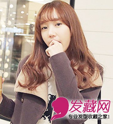 棕色加上荷叶式刘海将气质感完全衬托出来,简单的波浪卷发造型,发尾自然散开增加了发型的气质度,也遮盖宽脸的缺点哦,是非常百搭的一款女生卷发。
