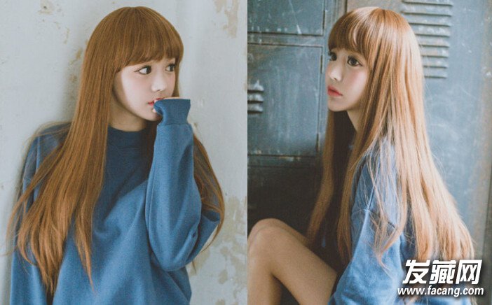 出挑的麻黄发色惹人注目,配上及腰的长直发更显可爱呆萌,厚重的齐刘海不仅能修颜瘦脸,还为整体感觉填上一丝清纯甜美,随意散落的直发飘逸柔顺,更加衬托出女生白皙的肤色。