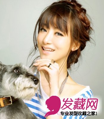 如果你不想盘发过于成熟,那么利用凌乱美打造出盘发的慵懒美态,是最好不过的选择了!在盘发中注入编织发辫技巧,让发辫缠绕在发型上绽放出娇艳。余留的几缕发丝点缀出盘发风情,轻薄的齐刘海也同样带出空气感,令造型显得更加轻盈。