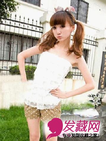 这款既简单又时尚的双扎发尾,既简约又易打理。将头发随意分成两部分,扎成发束,一款双马尾就轻松搞定了,然后把马尾抓取出些毛躁感,让马尾看上去更加自然大方,搭配一个兔耳朵发箍,可爱度倍受升级。