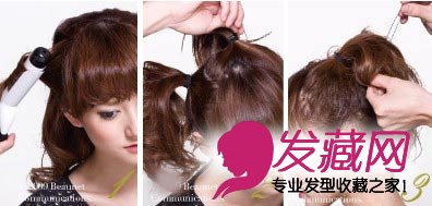Step 1 这款盘发 需要发丝具备一定的弧度。因此事先提取发片,对整体的头发进行从发中至发梢的内卷。