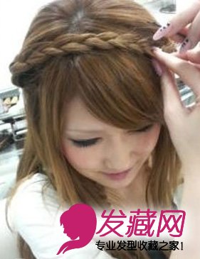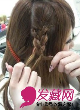 把耳侧的头发用三股编发来编,这样会是一个大编发,只要顺势把发束分成三股即可。