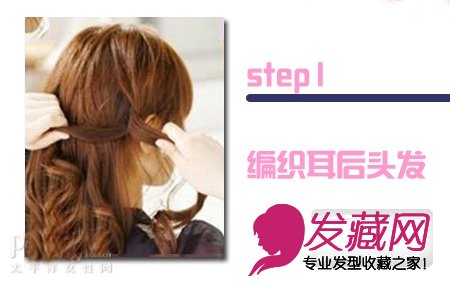 从耳后的位置开始,抓取两束头发进行交叉式编织,不用扭得太紧,只要看得出有编织的样子就好。