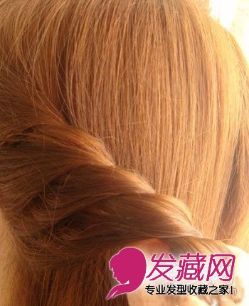 步骤五:把两束头发对着扭转,接下去每扭一下,都从左边挑取一束头发加进去对着扭转。