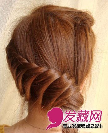 步骤八:按照这样的步骤一直把头发扭转至发尾,记得扭至上部分发尾处时,要将发辫向下进行扭转了。