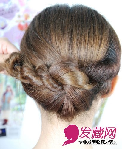 缠到尾后,把头发在左边用卡子固定住