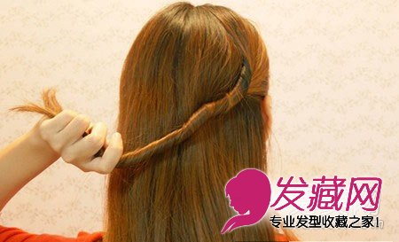 步骤一:造型前,先把头发梳顺,在右侧耳际后方取一束头发扭转起来。