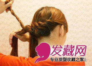 步骤四:盘的时候,往左边绕过去,一边扭转一边取剩下的头发,直到所有的头发都盘上去。
