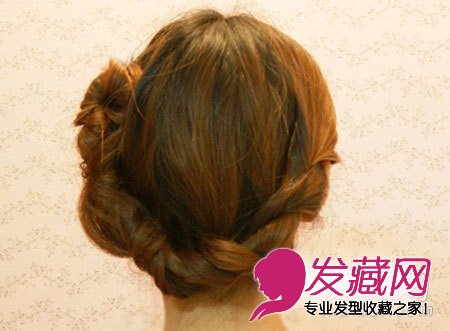 完成效果图:一款花环式甜美编发盘发就完成啦!喜欢发饰的女生也可以在侧面别上喜欢的发夹。