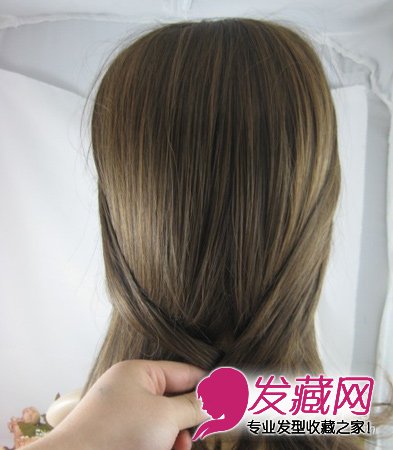 取右边头发的最外面一束头发,压在刚刚那束头发上面