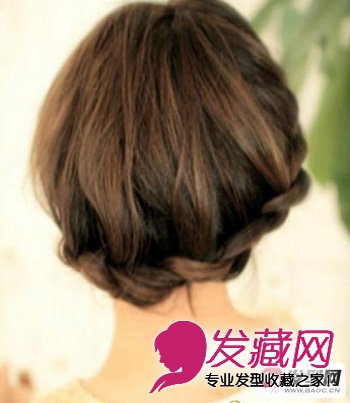 谁说盘发发型是长发美眉的专利啊,短发也可以,这款就十分适合齐肩短发美眉,将短碎发在颈上全部编起,扎成环绕式盘发,