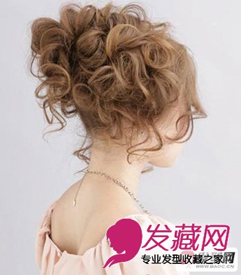 充满立体感的盘发发型,发髻高耸竖扎,略显夸张,挑落的丝丝卷发更增妩媚性感。
