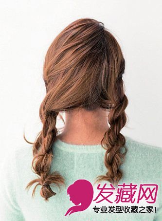 3、另一侧也同样进行步骤1~2,发尾处要橡皮筋扎成丸子状。