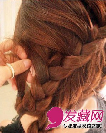Step7:接下来我们把两根辫子的发尾分别向内弯曲,把发尾藏到头发根部,并用发卡固定好。