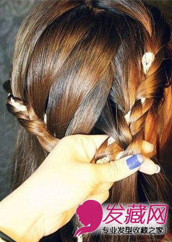 右侧的麻花辫和右侧剩下的头发以同样的方法向左下方混编。