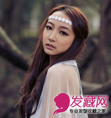 最新无刘海长发发型,展现迷人面庞 森林系女生长发发型,十分显个性,棕色的挑染发加上粉色的花饰,美艳波西米亚风。