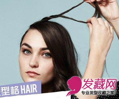 然后从分界线抓取两小撮发束开始扭拧缠绕它们。
