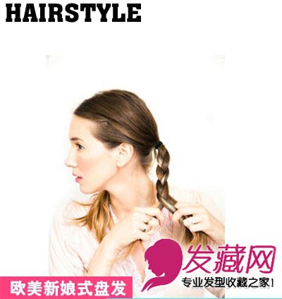 step 2:将左侧的马尾辫编成三股麻花辫。