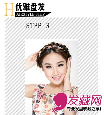 step 3:将辫子围绕头部,用发夹固定,就完成这款发型了。