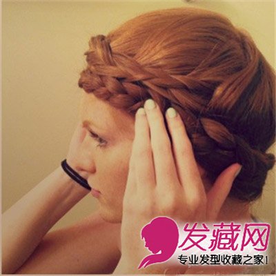 STEP 7 将编好的麻花辫绕额迹一周,如图所示。就是最后的发型啦。