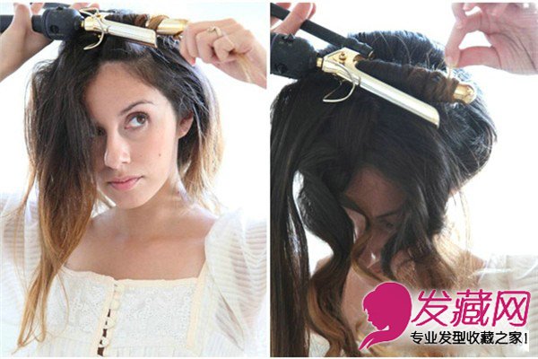 STEP4 然后把头顶头发放下来,继续用卷发棒弄卷曲。