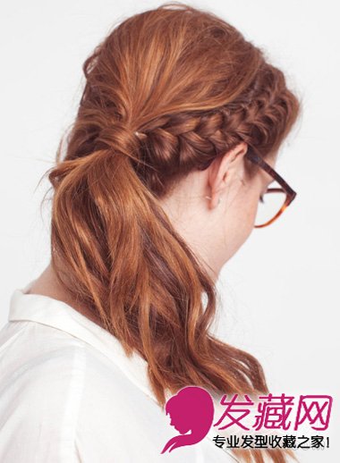 这款编发发型在生活中也算是比较实用也是比较常见的,先进行刘海编发,然后用头发绑出低马尾造型,低头的时候超有亮点。