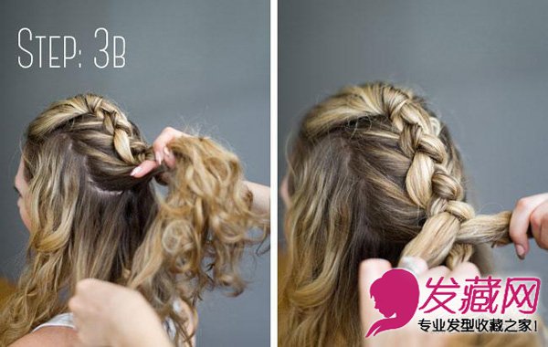 从披散头发的两侧分别取出均匀粗细的头发,交错地加入辫子中进行编织。