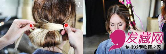 7:将剩下的发尾缠绕在皮筋处,然后用夹子固定住发型。