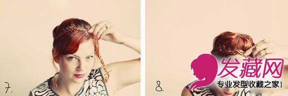 7:将两边的三股辫缠绕在头顶。让它们像发箍一样“戴”在头上。