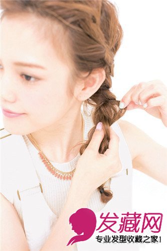 从编花中抓出少量发束并抽拉。弄松编花以提升蓬蓬感。
