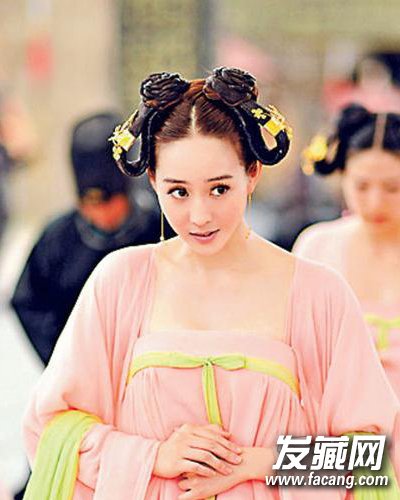 STYLE 1 云朵装盘发露出精致的小脸蛋,粉红色的古装彰显清新俏皮。
