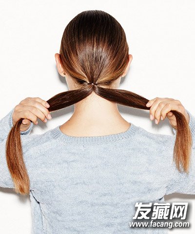 步骤一:先把头发梳成低马尾,并均等分为两束。