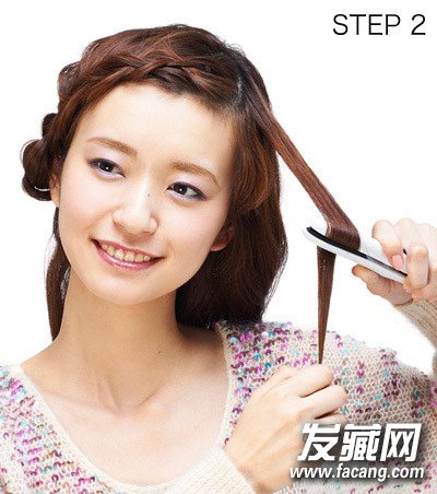 step2:取出左侧的头发用卷发棒烫卷。