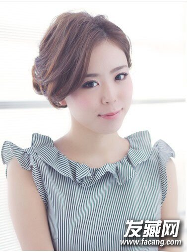 侧分的刘海烫出卷曲的效果,搭配上将头发微微盘起,气质的感觉瞬间呈现出清新的效果。